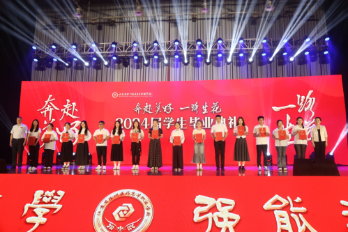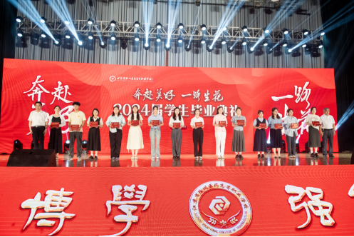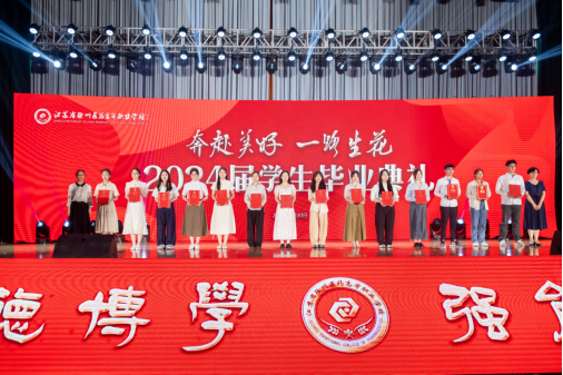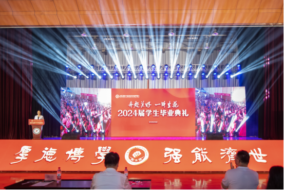 我校2024届学生毕业典礼于6月30日下午在校体育馆内隆重举行。本次毕业典礼以“奔赴美好,一路生花”为主题,寓意着毕业生们怀揣着梦想和希望即将踏上新的美好人生旅程,在人生路上他们将会绽放出绚丽的花朵,不仅成就自我,也为社会贡献自己的光彩。