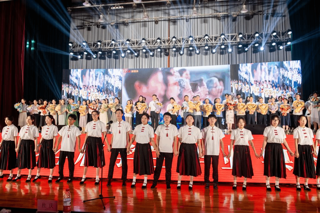 随后,2024届全体班主任们纷纷走上舞台,为毕业生们分别送上了特别的祝福,祝福中不仅包含了他们对毕业生们的殷切期望,也承载了他们对毕业生们未来人生的美好祝愿。毕业生代表手持鲜花,向辛勤付出的班主任们献上鲜花,表达了对老师们无尽的感激和敬意,师生们共同合唱了歌曲《一路生花》。这个难忘的瞬间将永远留在每一个人的心中,成为他们人生中最珍贵的回忆。