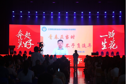 典礼正式开始后,首先播放了《江苏联合职业技术学院王伟院长寄语2024届毕业生》的视频,王院长向即将踏上人生新征程的毕业生们发表了深情寄语。