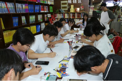 一盏书灯,照亮青春。除了学习写作、阅读书籍外,同学们还动手参与了书灯制作。在书店工作人员的指导下,同学们围坐在一起,充分发挥创造力,从设计构图,到绘画黏贴,每一盏灯都充满独特的艺术魅力。当一盏盏的书灯陆续被点亮,现场的氛围也变得温馨而美好,书灯的光芒照亮了每个人的脸庞,同时也照亮了同学们心中的阅读之路。